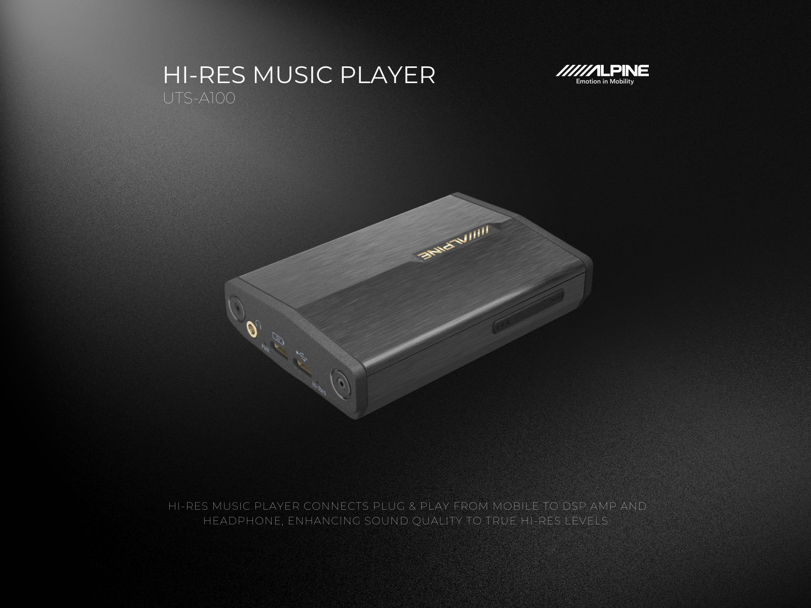 Hi-Res Music Player connects PLUG & PLAY from mobile to DSP amp and headphone, enhancing sound quality to true Hi-Res levels!