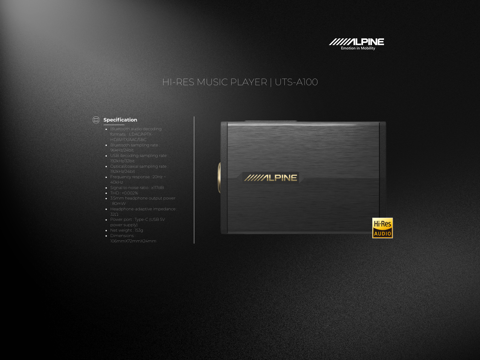 Experience realistic sound like never before with exceptional Hi-Res decoding capabilities, every note of music and every vocal becomes realistic, clear, and vibrant, creating an unmatched listening experience.