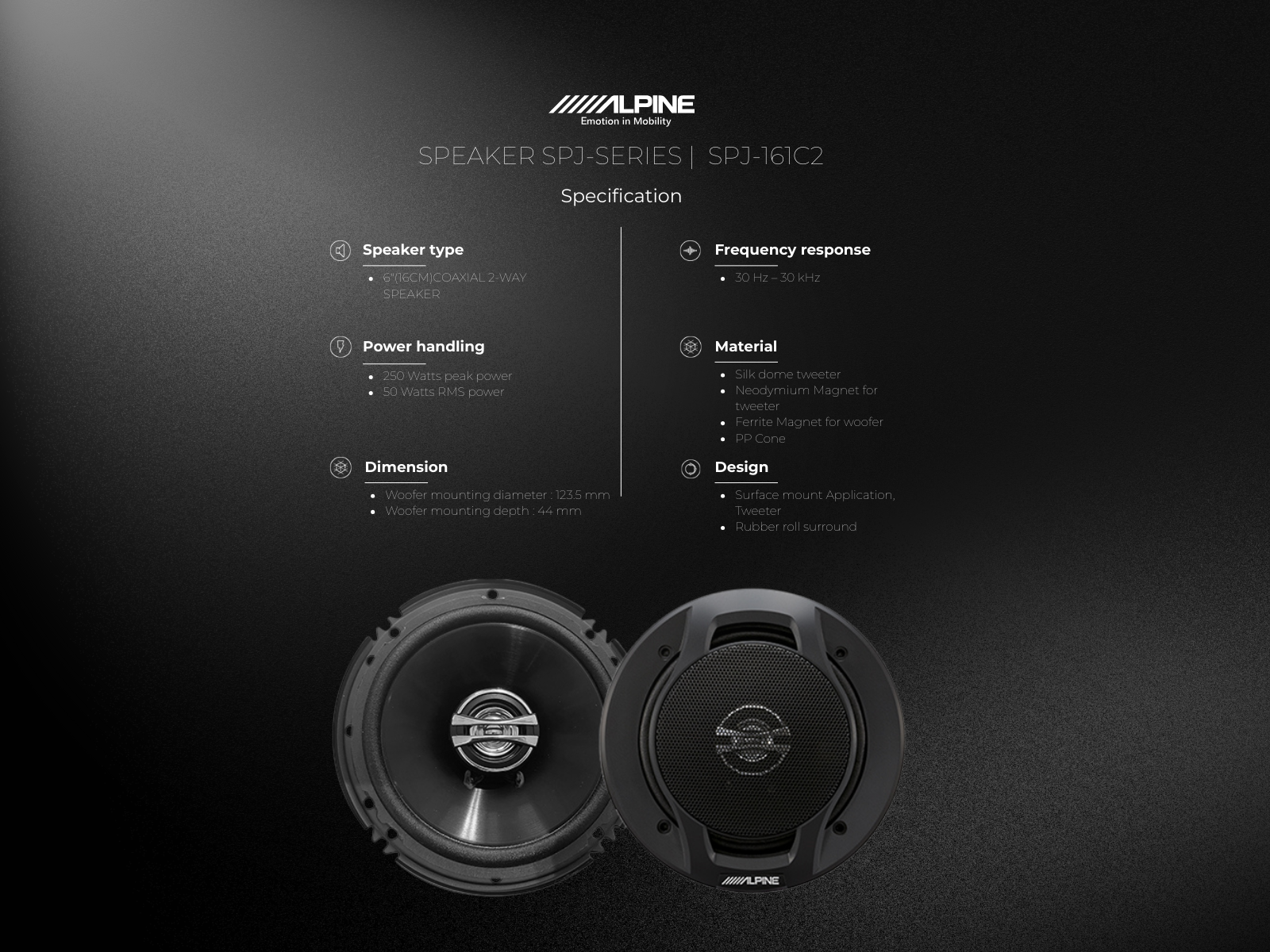 The entry-level Type-J speaker series is an affordable way to upgrade your factory speakers or even to start building a sound system, for the excellent sound quality and performance you expect from Alpine.
